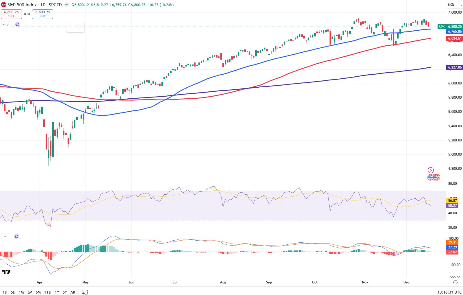 Dünkü veriler sonrası S&P 500 kapanışını 6.800 seviyesinden yaptı.