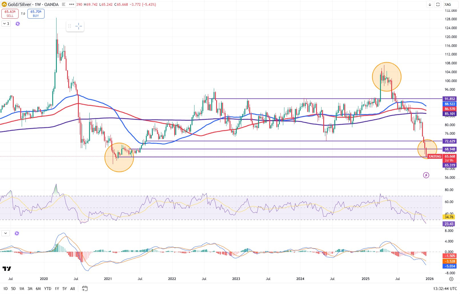 Altın/Gümüş oranı haftalık grafik: