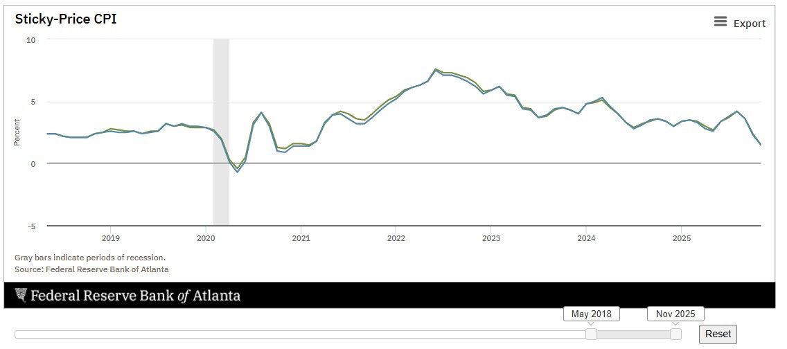 Atlanta Fed: Hem manşet hem de çekirdeğin 3 aylık değişimden yıllıklandırılmış “yapışkan” değişimi %1.5
