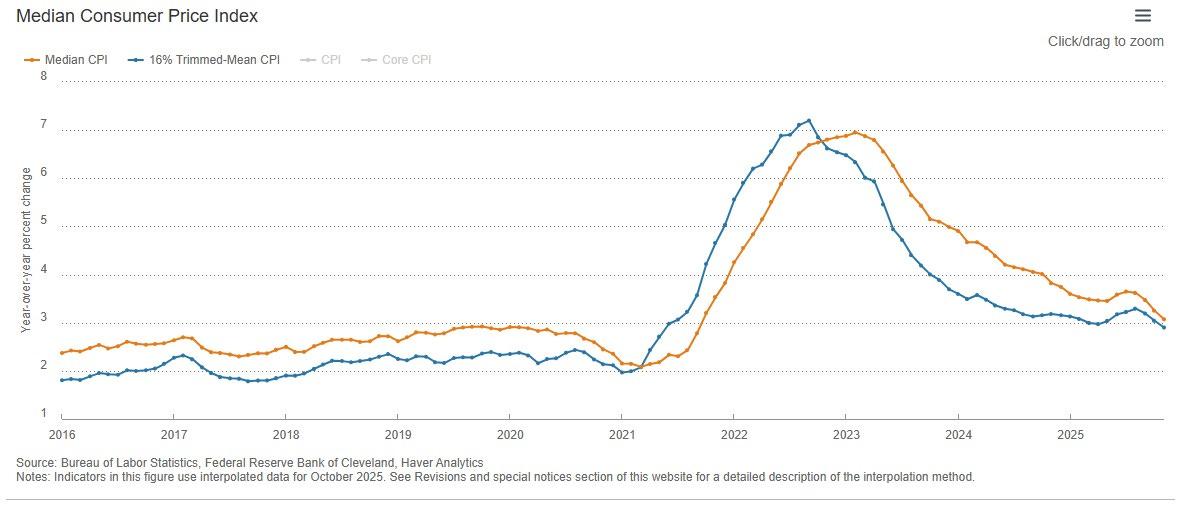Cleveland Fed: Kırpılmış TÜFE’nin Eylül ayında yıllık değişimi %3.19 seviyesindeydi. Bu rakam Kasım ayında %2.9’a geriledi. Medyan hesaplaması da Eylül ayında yıllık değişimi %3.47 seviyesindeydi. Bu rakam Kasım ayında %3.07’ye geriledi.