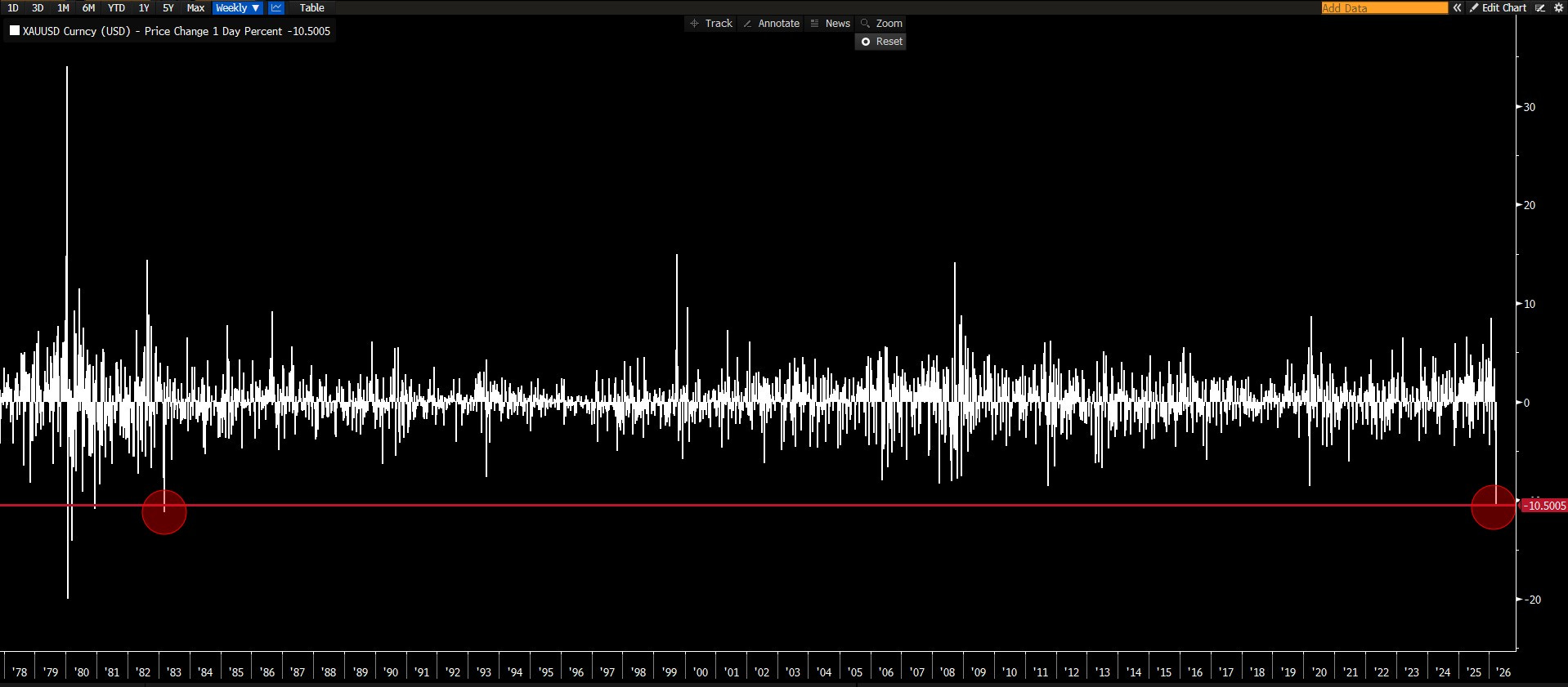 Geçtiğimiz hafta spot piyasada altın ($/ons) %10.5 düşüş ile Bloomberg verilerine göre 1983 tarihinden beri en sert haftalık kaybını yaşadı.