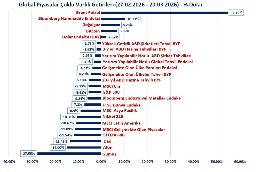 Mart ayında (ABD-İsrail-İran süreci boyunca) global piyasalarda takip ettiğim endekslerin/enstrümanların performans tablosu aşağıda.