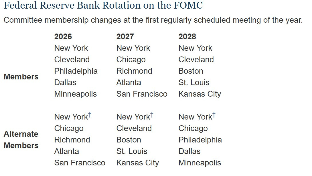 Kısa bir hatırlatma: 12 adet oy hakkına sahip üye var. 7’si guvernör ve 5’i bölgesel Fed başkanı. Bölgesel Fed başkanlarından New York sabit bir şekilde oy hakkına sahip. Yani 4 adet bölgesel Fed başkanı rotasyon ile her yıl oy hakkına sahip oluyor. Örneğin gelecek sene oy hakkına sahip olacak olan (NY dışında) bölgesel Fed başkanları Cleveland, Philadelphia, Dallas ve Minneapolis.