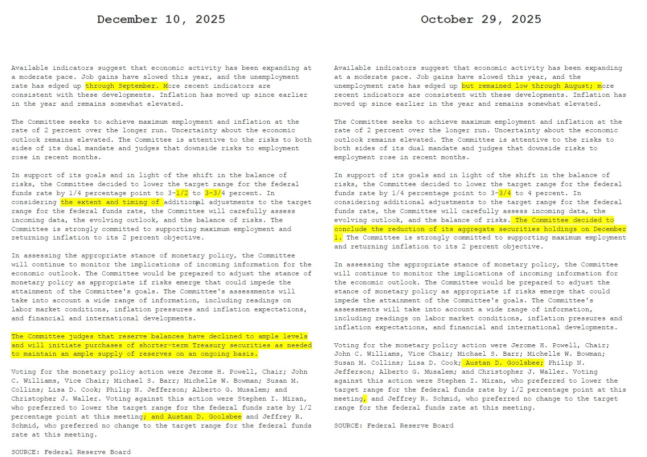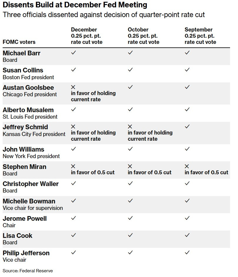 Guvernör Miran’dan 50 baz puanlık indirim beklentisi zaten cepteydi. Asıl olay “kaç üye karara indirim olmasın” diye “resmi” bir şekilde itiraz edecekti? Cevabı aldık. 2 üye politika faizi sabit kalsın şeklinde itiraz etti. Schmid (Kansas City Fed) ve Goolsbee (Chicago Fed) itiraz eden isimler. İkisi de “bölgesel Fed başkanı”. İkisinin de 2026 yılında “oy hakkı” olmayacak.