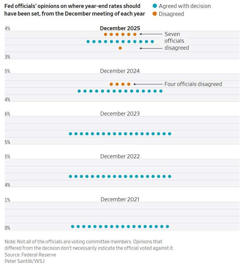 2024 yılının son toplantısında da benzer bir durum vardı. Toplantı sonunda politika faizinin yılı kaçtan kapatacağını bilmelerine rağmen “nokta grafikte” 4 üye aslında içlerinden pek gelmeyerek sonuca uymuştu… 2025 yılında da Eylül ayına kadar bir indirim yapılmadı…
