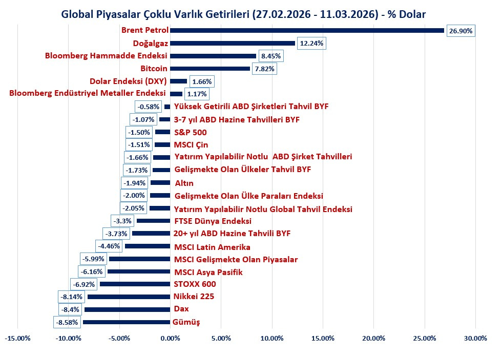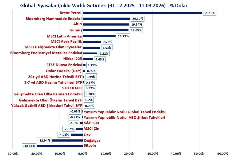 Mart ayında çoklu varlıkların dolar bazlı performanslarına baktığımızda (ABD-İran süreci ilk fiyatlamları);