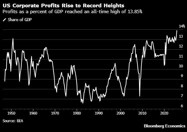 Geçtiğimiz hafta benim ise makro trafta en çok dikkatimi çeken grafik aşağıda. Şirket karlarının büyüme içindeki payı…