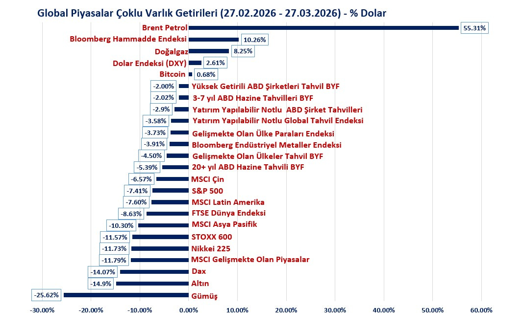 ABD-İsrail-İran gelişmelerinin dördüncü haftası geride kalırken global piyasalarda takip ettiğim endekslerin/enstrümanların Mart ayı performans tablosu aşağıda.