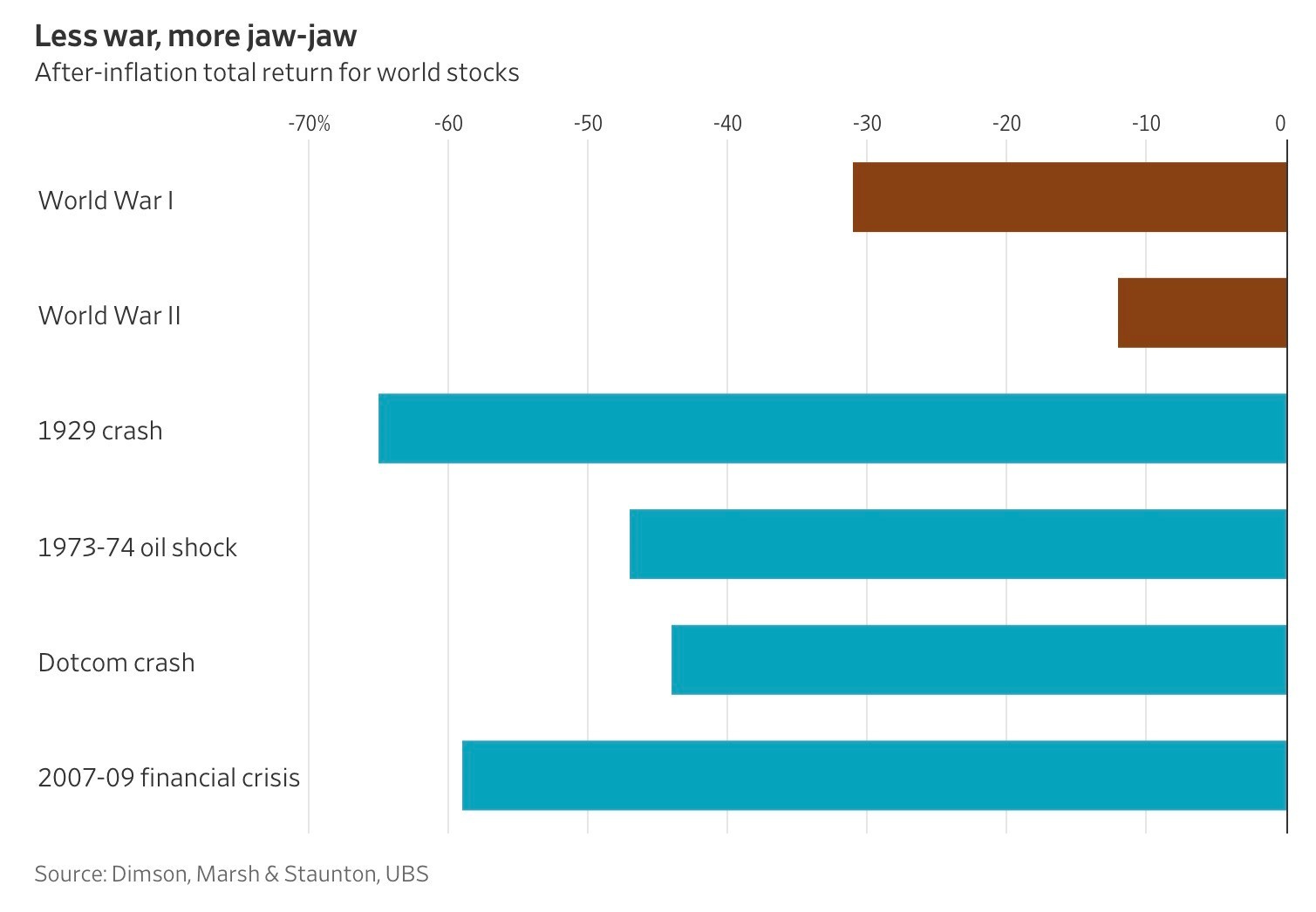 - WSJ’dan James Mackintosh’un bugün paylaştığı yazısında: S&P 500 için “The average drop across 30 major geopolitical events since 1939 was just 4%, according to Deutsche Bank, and the rebound was quick.”