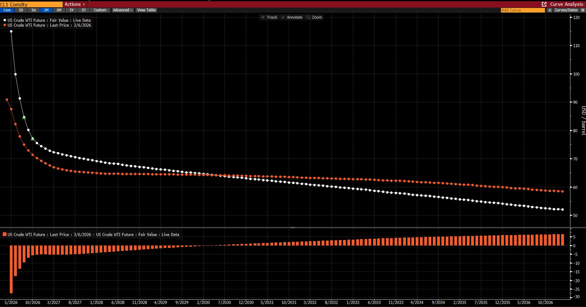 WTI curve’ü ise 1 ay öncesine göre daha sert bir backwardation fiyatlamasında… Gene de orta uzun vadede hürmüz olayının çözüleceğine piyasa inanıyor.
