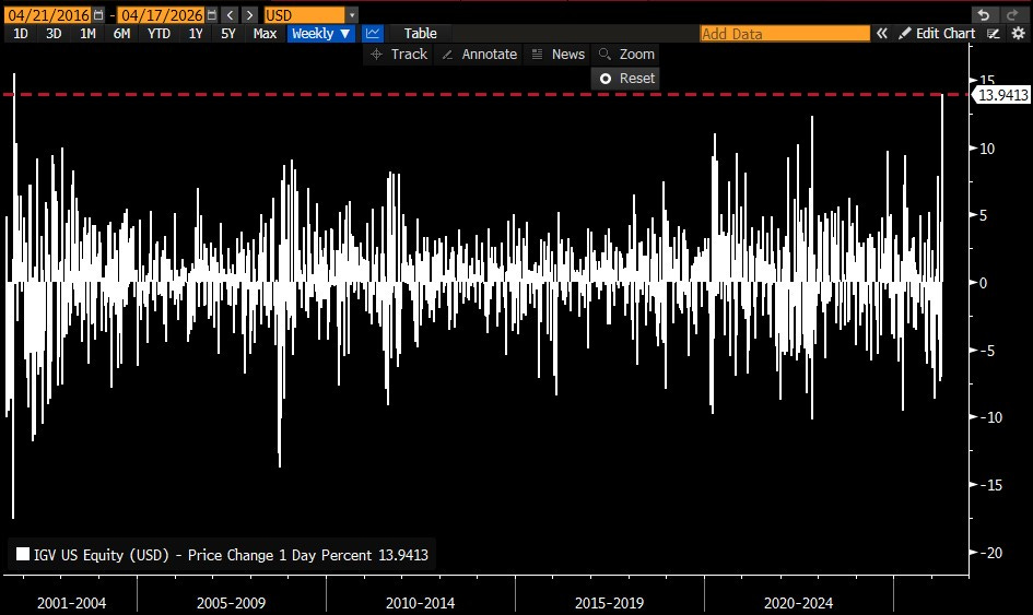 Benim en çok ilgimi çeken taraf ise “yazılım sektörü” oldu. Yapay zeka tehdidi ile bu sene paramparça olmuştu. Geçtiğimiz hafta ise 2001 yılından beri en iyi haftalık bazda getiriyi yaptı.