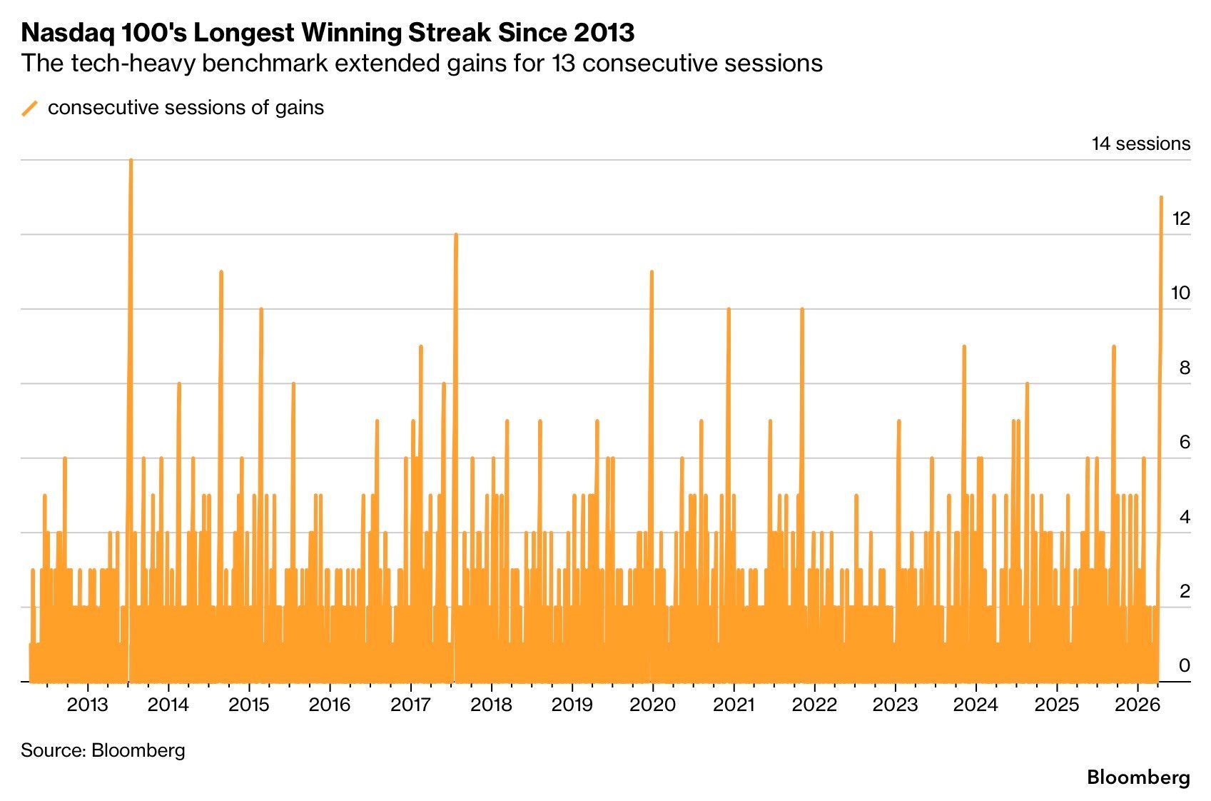 Bütün bu gelişmeler ile birlikte Nasdaq 100 endeksi 2013 yılından beri en iyi üst üste artı kapanış serisini sergiledi…