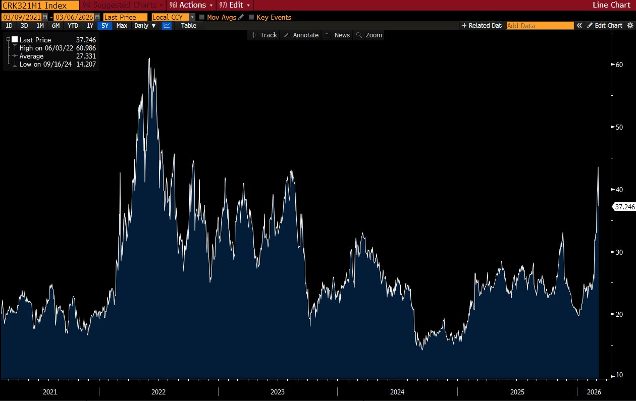Bloomberg’den aldığım 321 crack spread (WTI crude oil- gasoil-ULSD) grafiği de aşağıda.