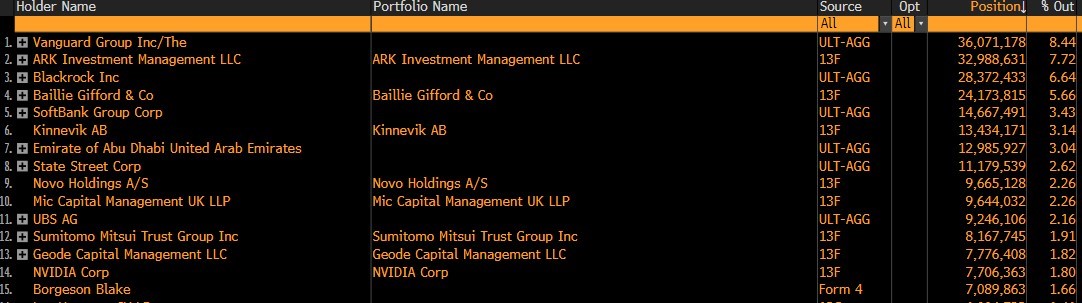 Ortaklık yapısı önemli bir değişken. Nvidia şirketin %1.8’ine sahip. Ark, Baillie Gifford ve Softbank’ta diğer öne çıkan “teknoloji dünyasını bilen” isimler olarak ortaklar listesinde.