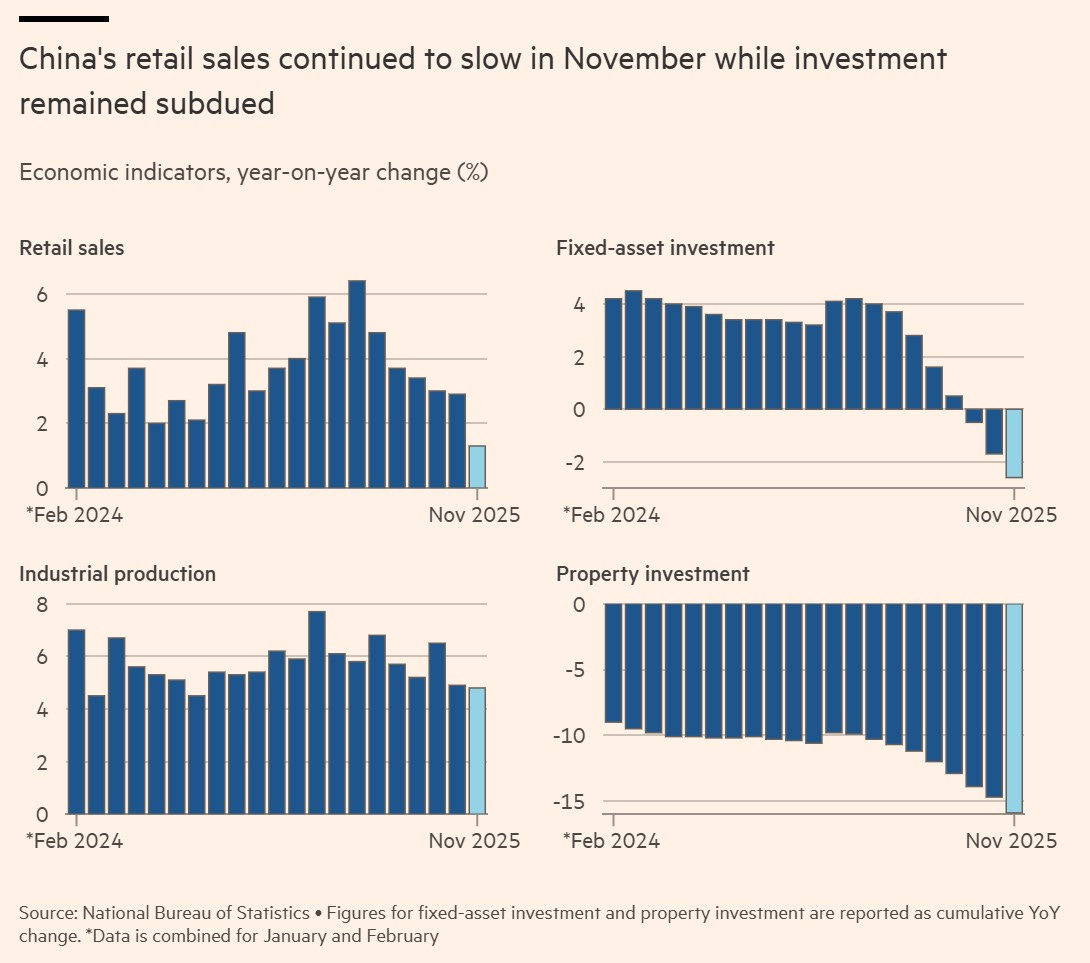Çin ekonomisi açısından da “olası bir barış” adına Çin’in destek olması “dealmaker” Trump tarafından ABD-Çin ticaret ilişkilerinde olumlu taraftan değerlendirileceğini düşünüyorum. Çin ekonomisinde Kasım ayı verileri pek iç açıcı değil.