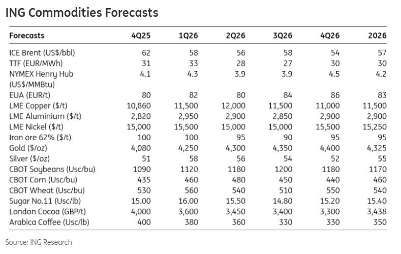 ING’nin 2026 için hammadde fiyatlarına dair beklentileri: