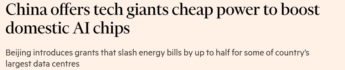 - Çin tarafı da hareketli. Yapay zeka temasının önemli bir darboğazı “enerji”. Çin yönetimi bu alana odaklı. https://www.ft.com/content/cad2cdd6-7cce-4de3-8710-977de667378c