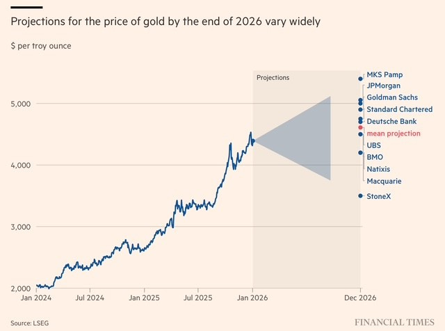 FT’nin altın fiyatlarına dair 2026 beklentilerini içeren grafiği aşağıda.