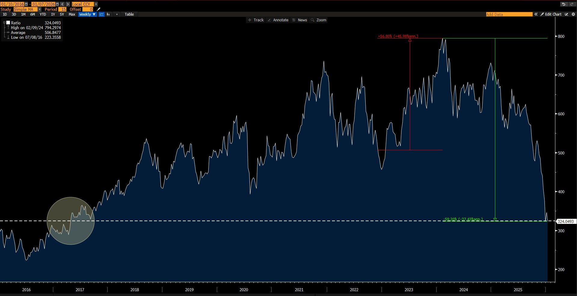 Teknolojik devrimin olduğu zamanlarda Nasdaq 100/Gümüş rasyosu 2017 seviyelerine geriledi. İnanılmaz bir çelişki…. Ölçümler ChatGPT sonrası olumlu ayrışma ve sonrasını gösteriyor.