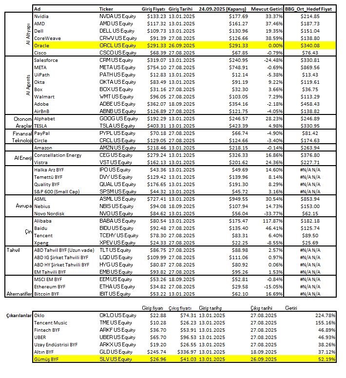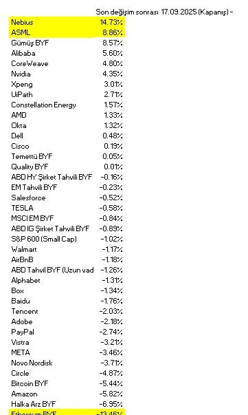 Son değişim tarihinden (18.09.2025) bugüne listede bulunan isimlerin performansı: